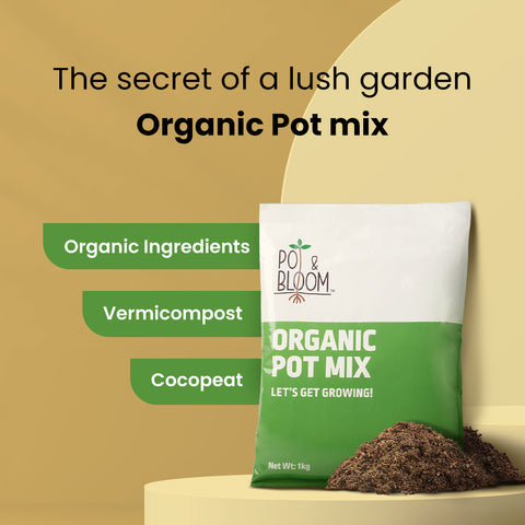 Organic Pot Mix is a blend of vermicompost, organic matter, and cocopeat, providing your plants with nutrients, moisture control, and excellent aeration.